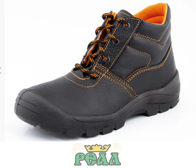 Характеристика: Матеріал деталей верху: союзка, заднік - натуральна шкіра; язичок, м'який кант - штучний матеріал; підкладка - нетканий матеріал, дубльований поролоном, антикорозійна фурнітура, жорсткий формований підносок. Таку ж модель черевиків випускаємо з металевим до 200 Дж підноском і утепленим штучним хутром. Матеріал деталей низу: комфортна вкладна устілка - нетканий матеріал. Підошва: з спіненого поліуретану з напливом в ділянці носка (зносостійка, маслобензостійка, кислотолугостійка, антистатична, антиковзаюча, профіль ходової поверхні самоочищається). Зручна колодка. Взуття сертифіковане.